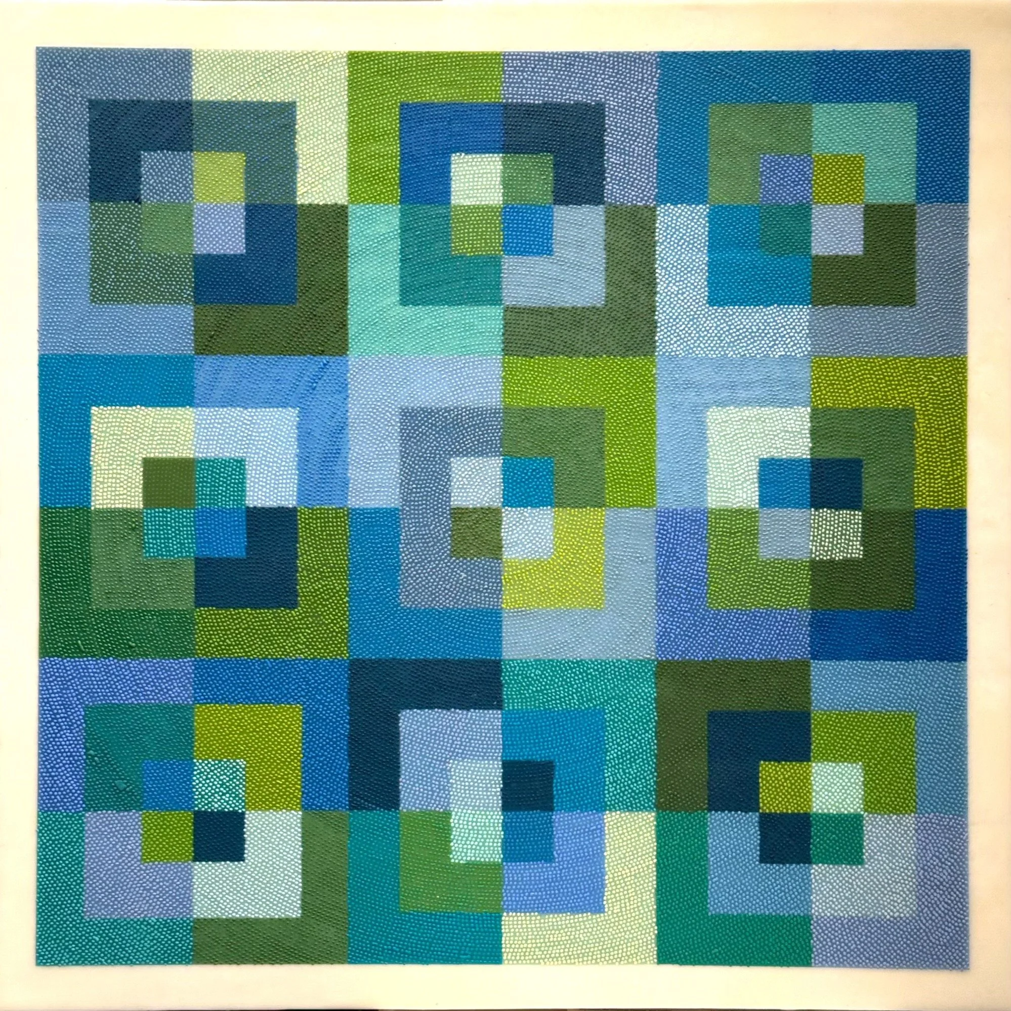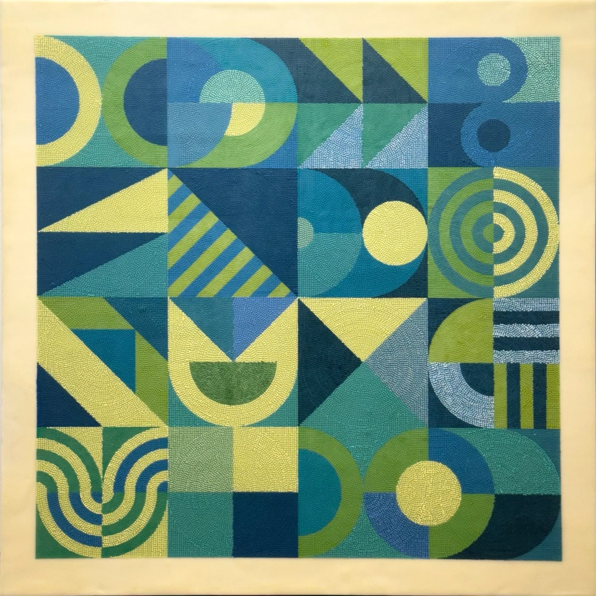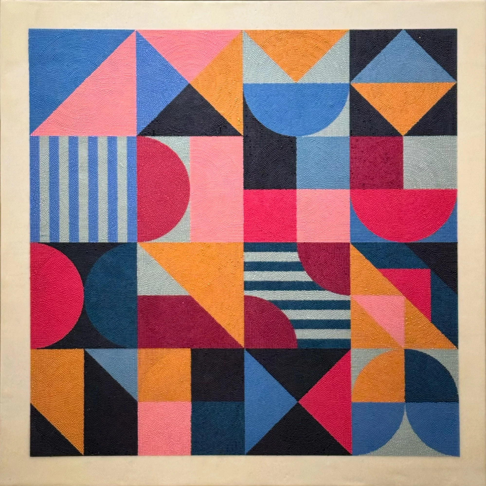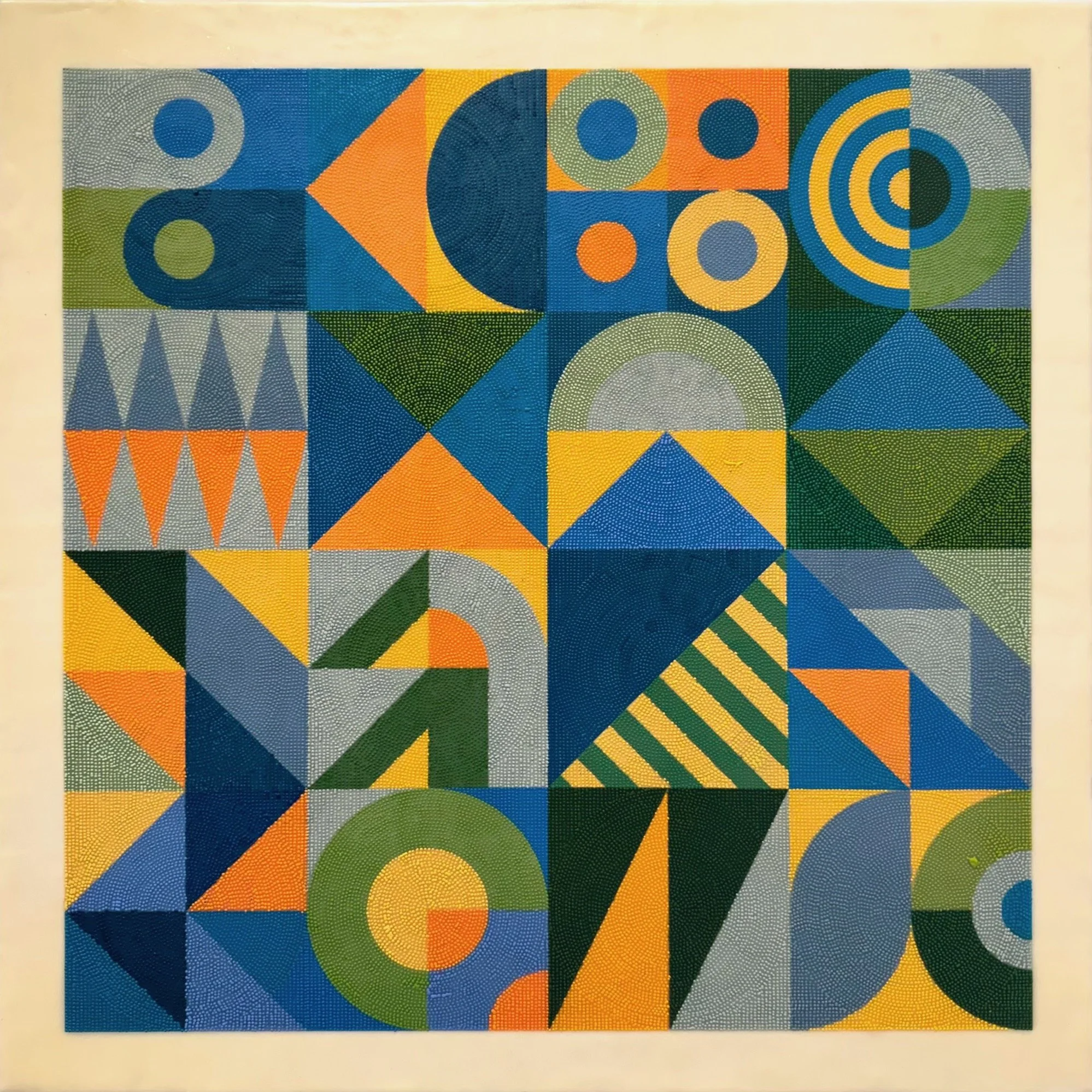 A curated view of my encaustic work—geometric abstractions grounded in digital design and built dot by dot in wax. For availability or commission inquiries, I’m always happy to connect.