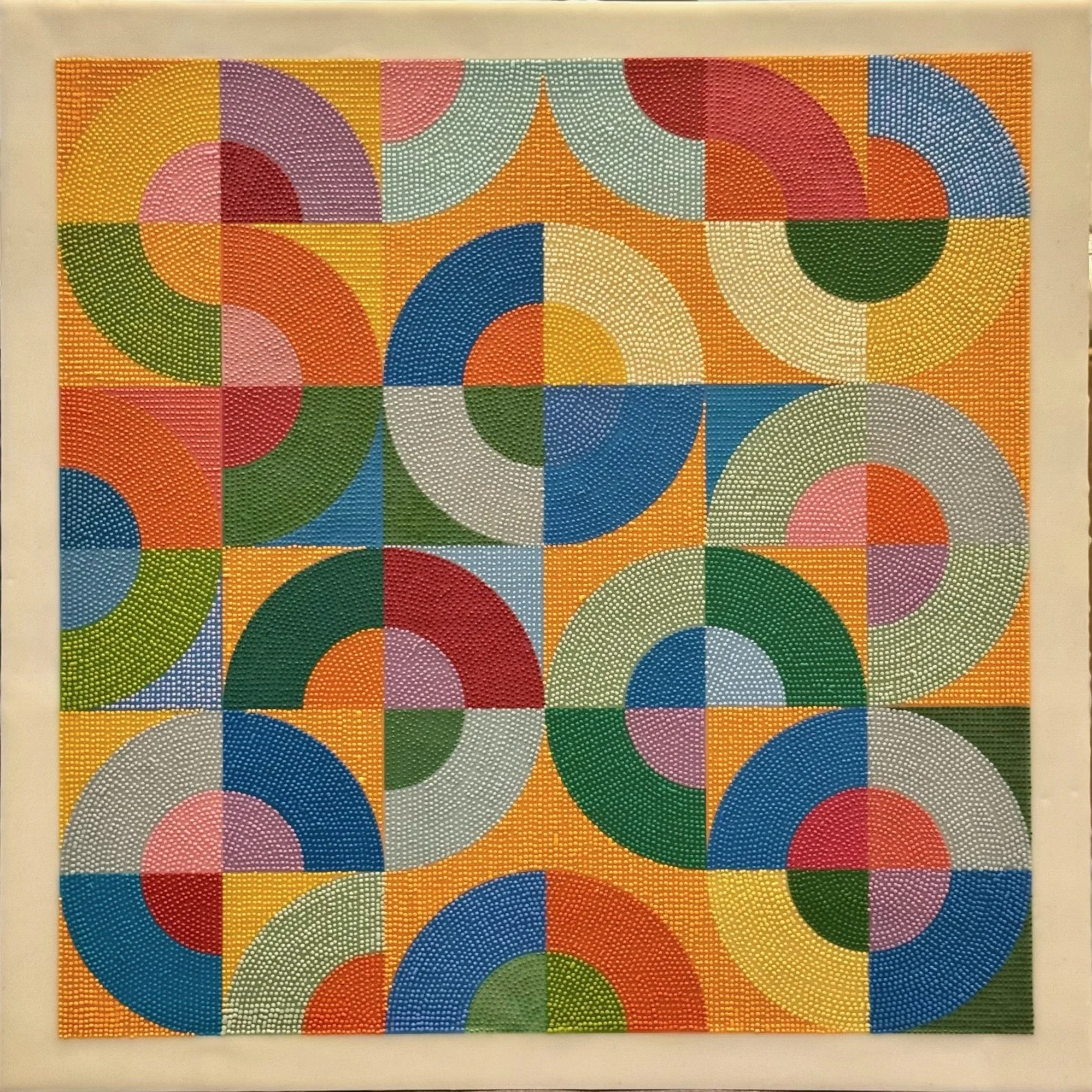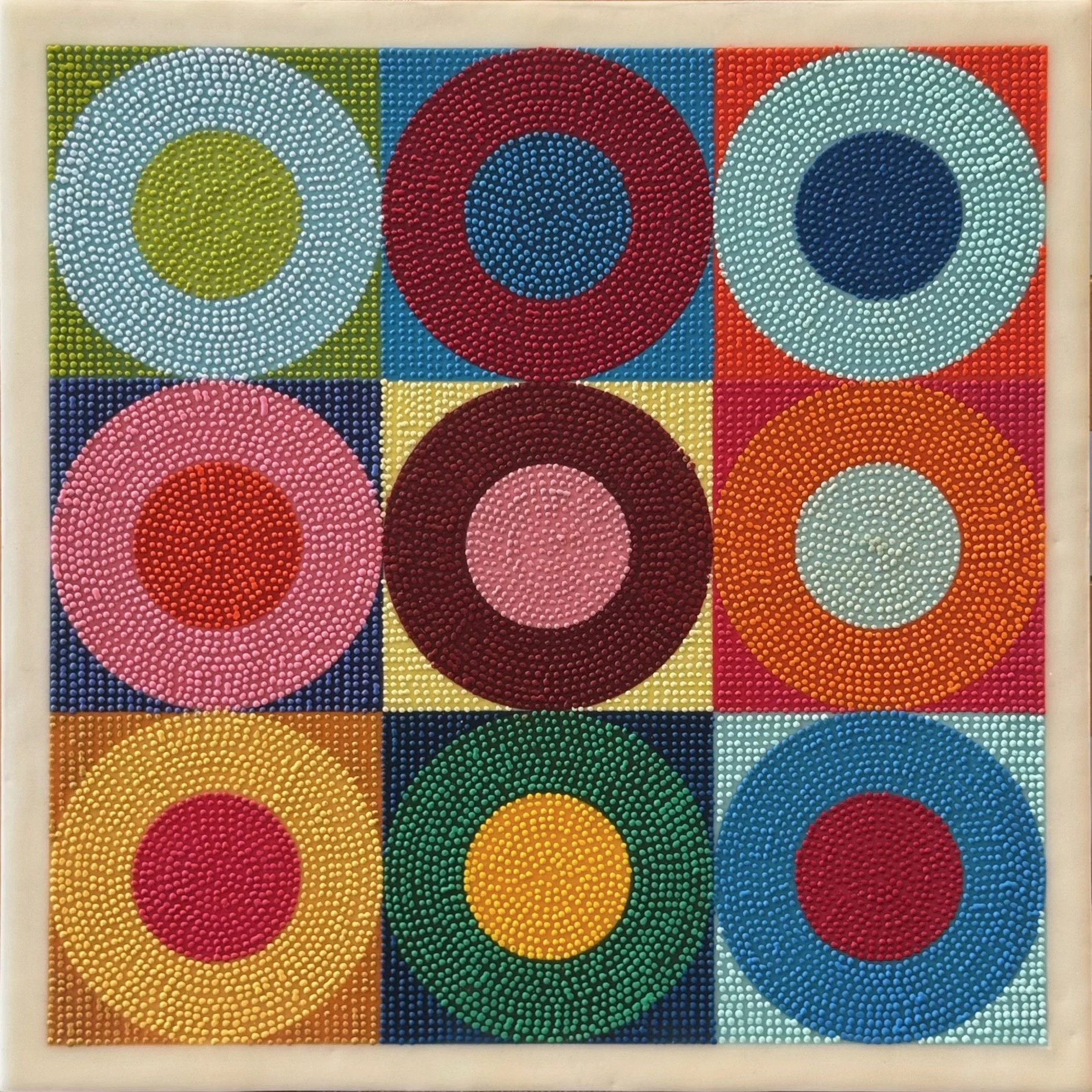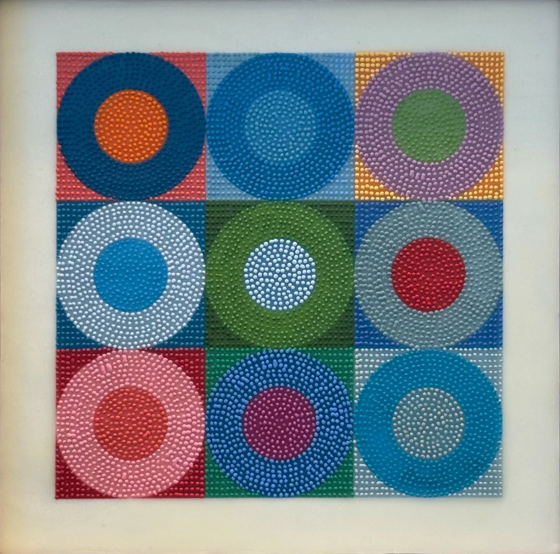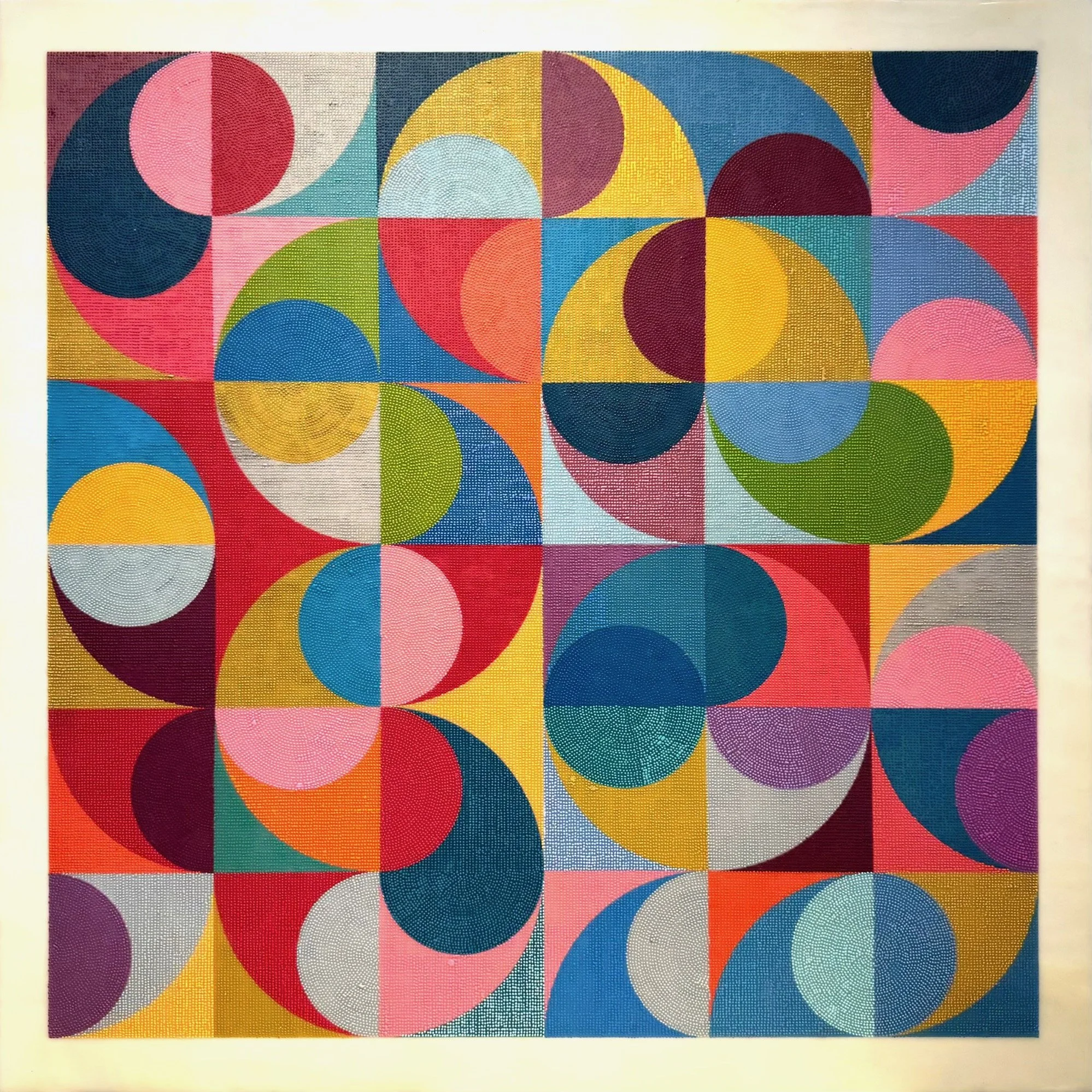 Radiant Circles explores how color, rhythm, and light interact within simple circular forms, creating compositions that feel both meditative up close and vibrantly alive from across the room.