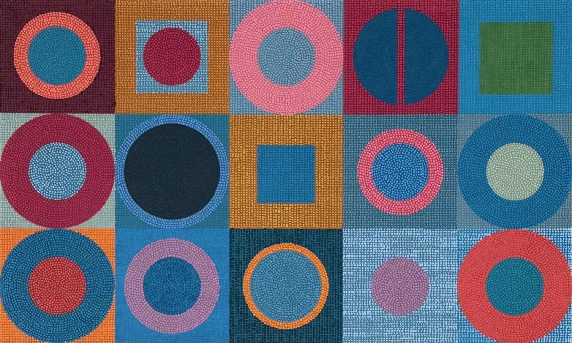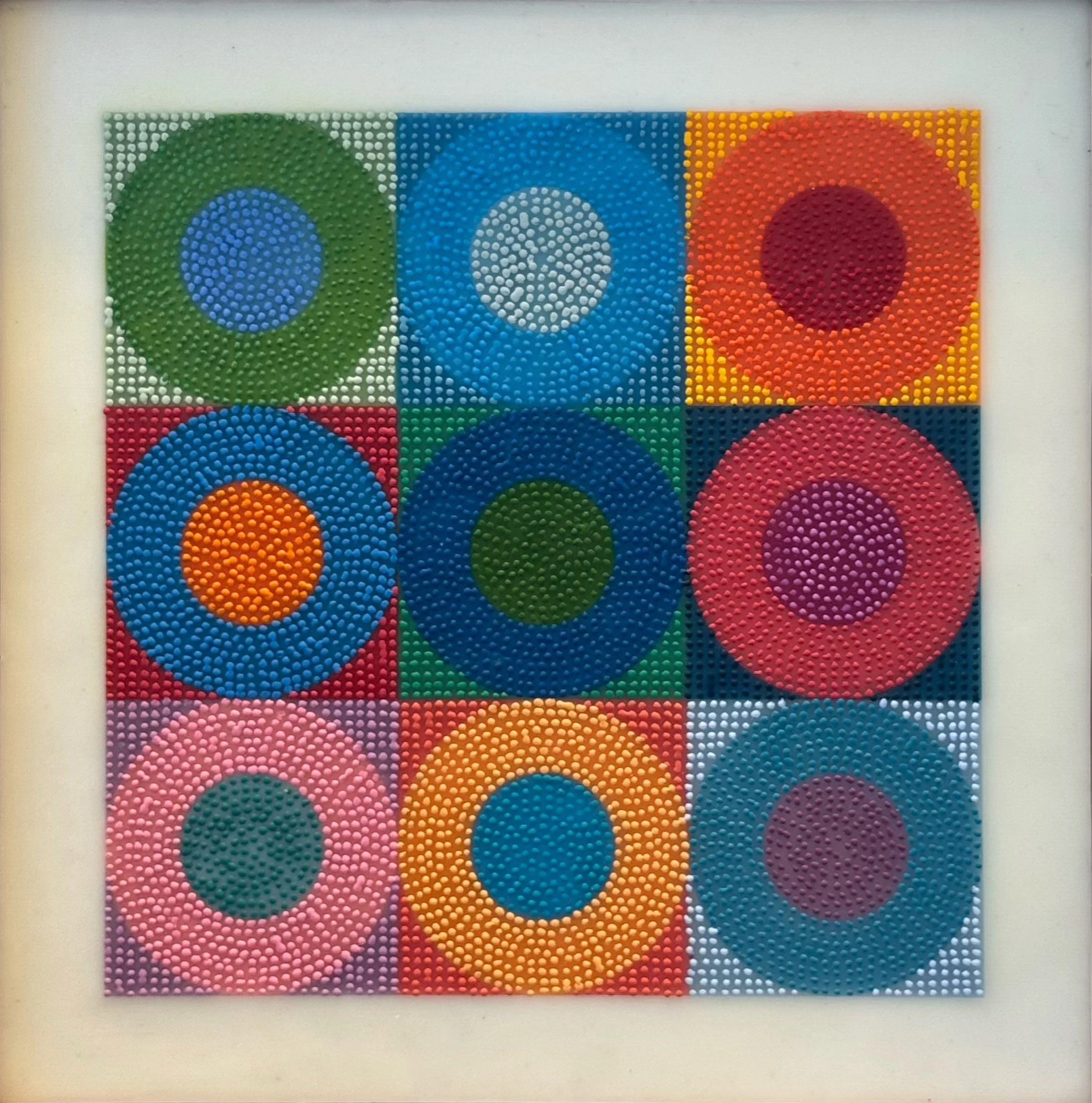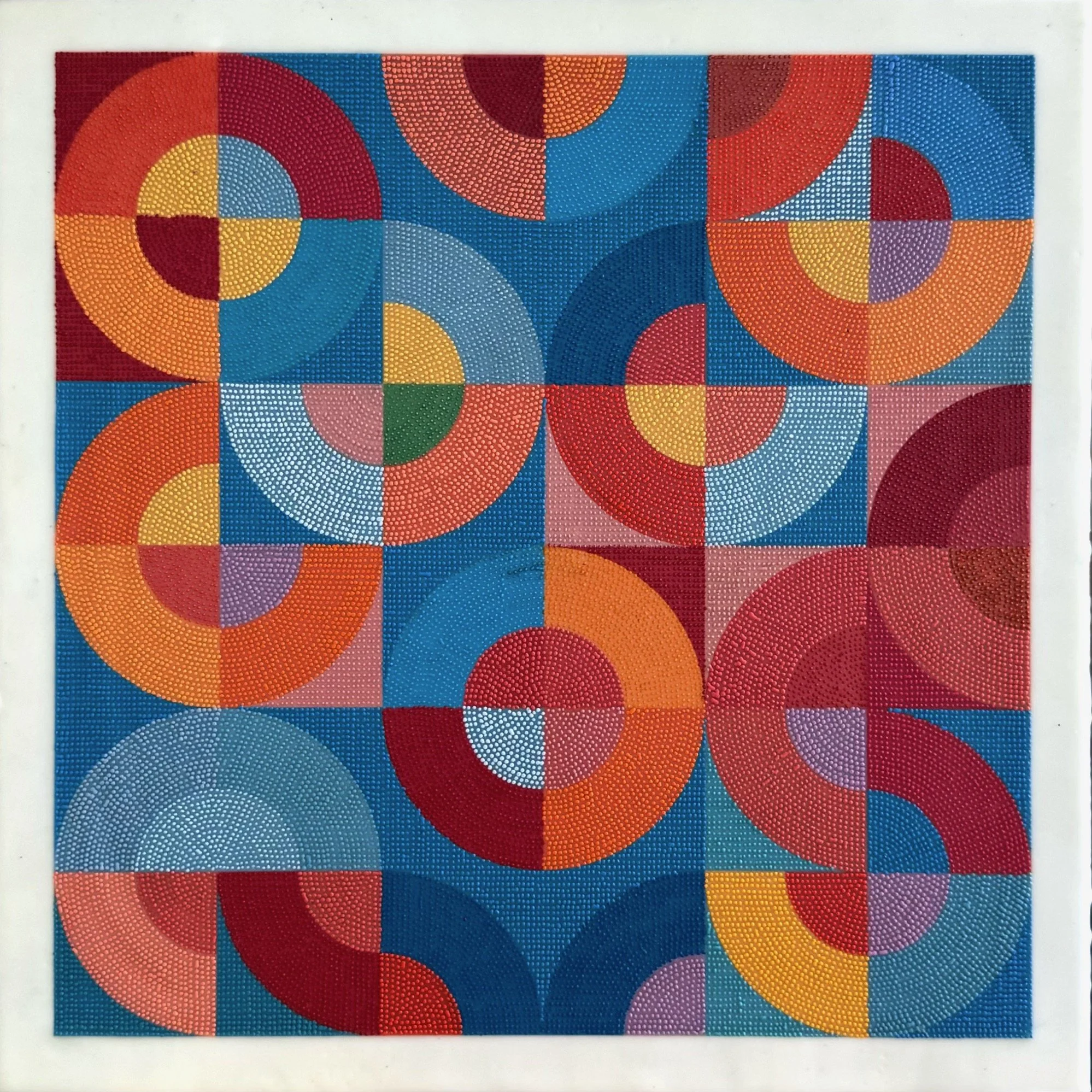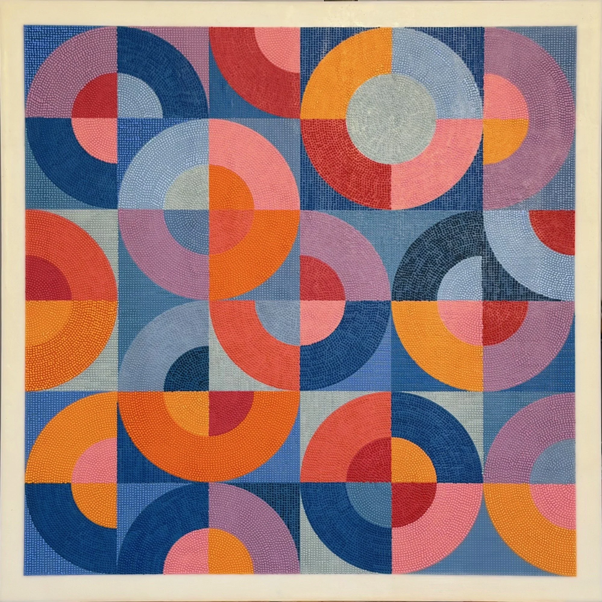 Radiant Circles explores how color, rhythm, and light interact within simple circular forms, creating compositions that feel both meditative up close and vibrantly alive from across the room.