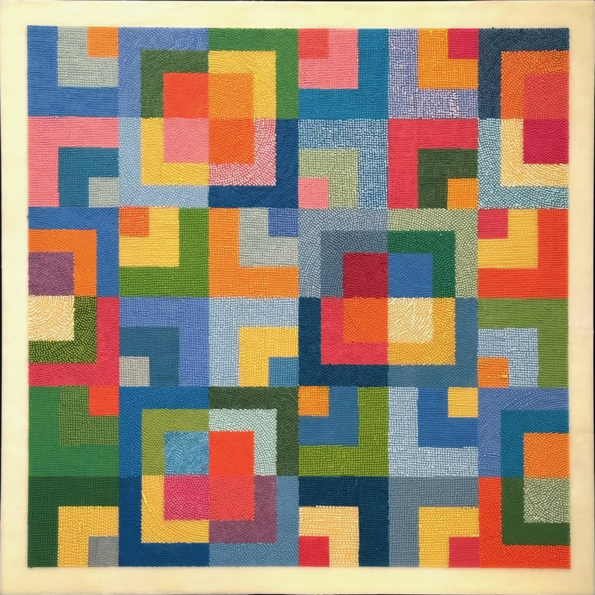 A contemporary interpretation of a classic quilt pattern, this series uses sweeping arcs and shifting palettes to build rhythmic, modern abstractions rooted in craft and tradition.