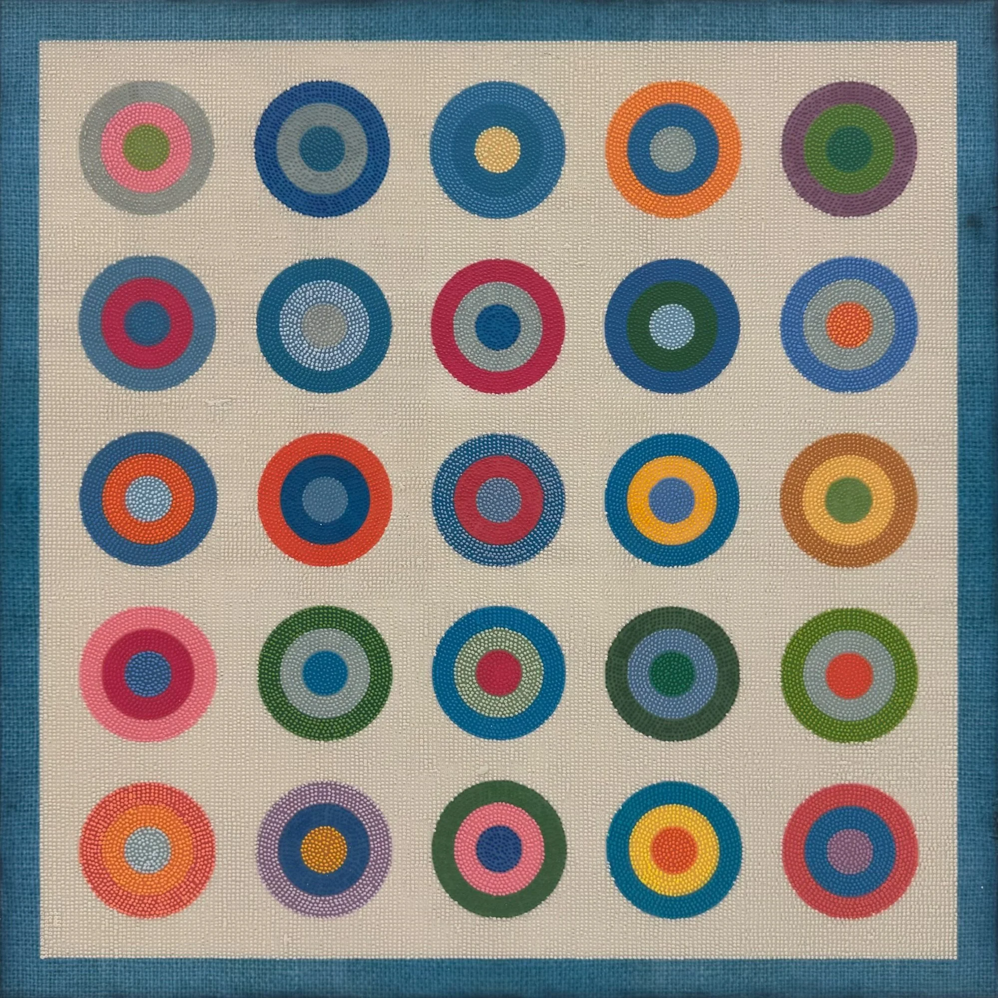 These works are available for purchase and represent the full range of my practice—bold abstracts, intimate still lifes, and geometric compositions rooted in quilting traditions and ethnographic forms. Each piece is built dot by dot in encaustic, creating depth, texture, and a distinct rhythm on the surface.