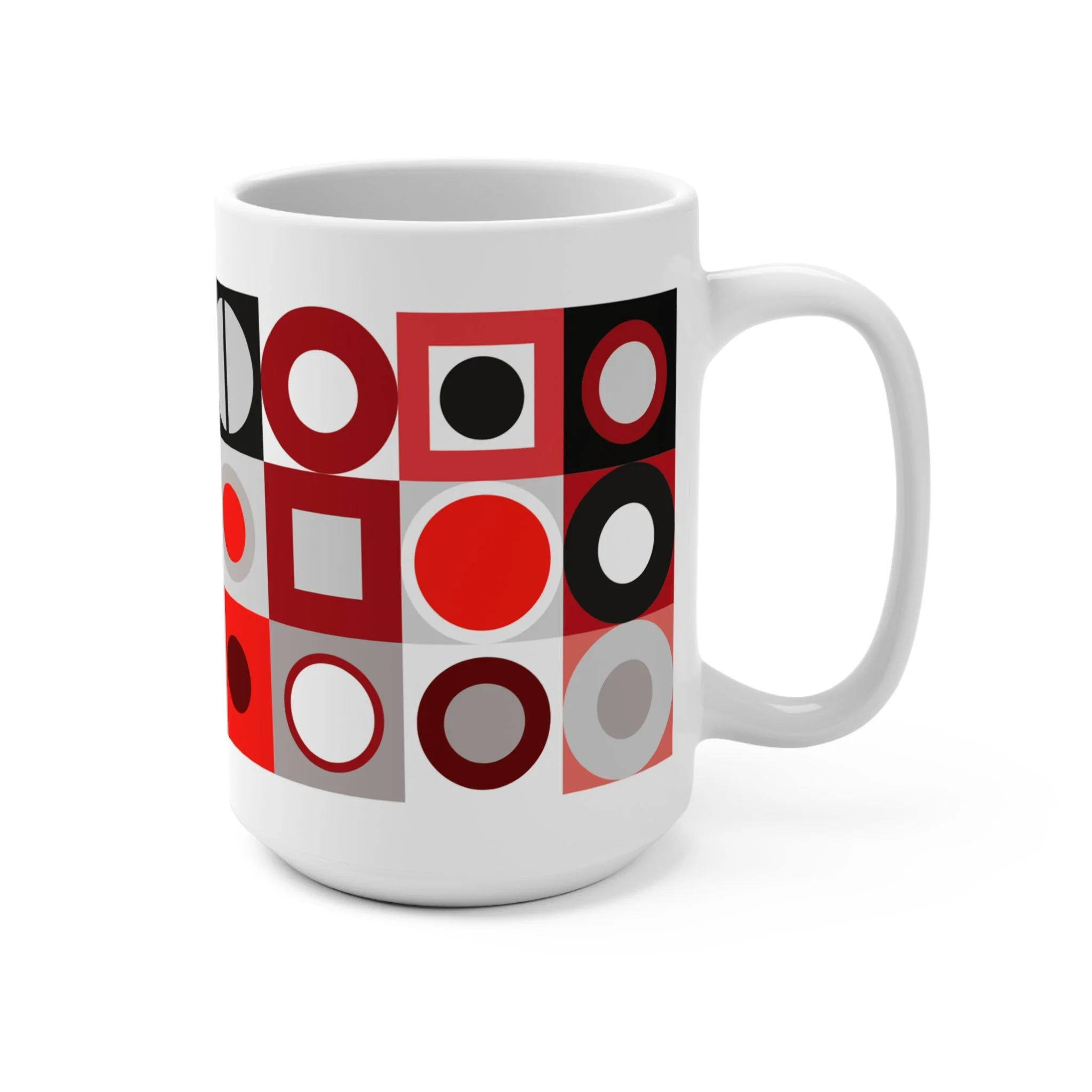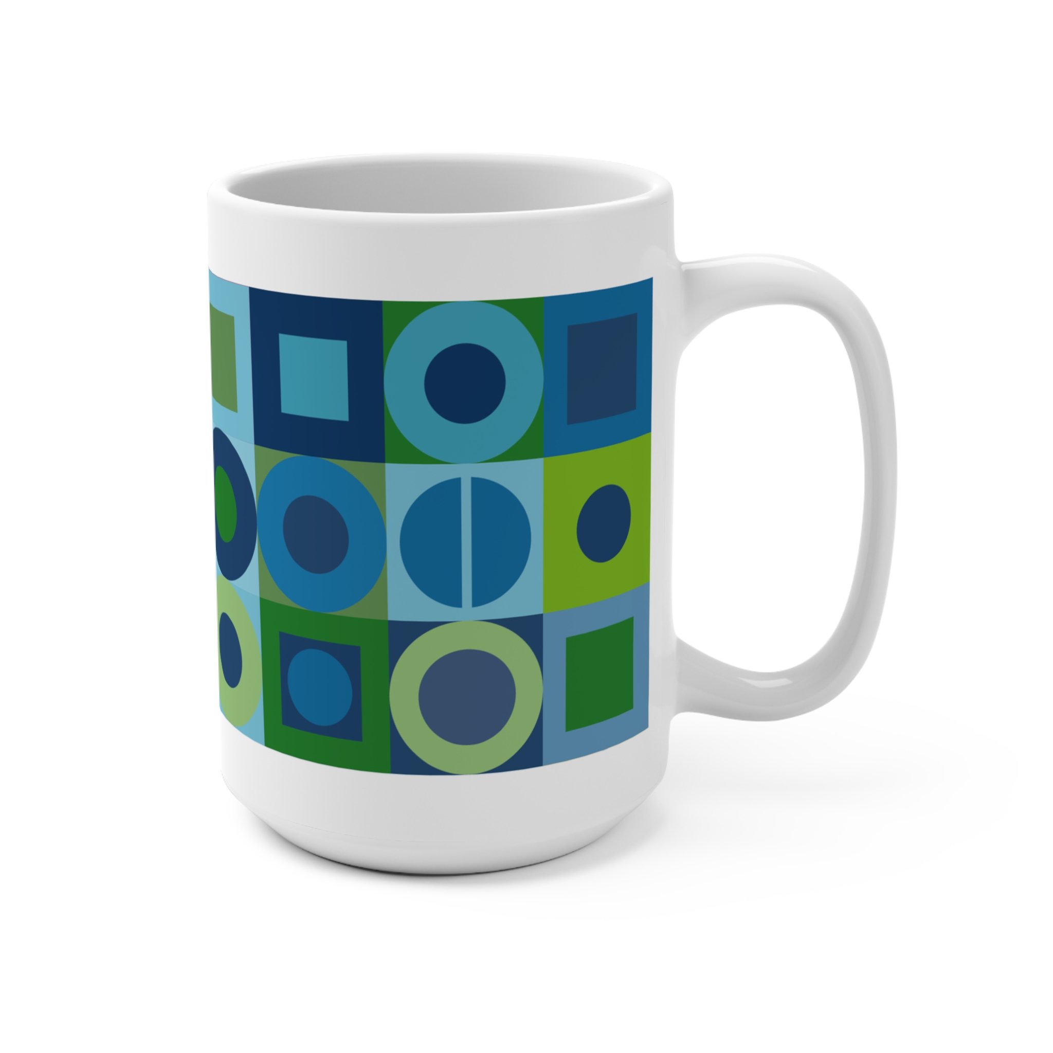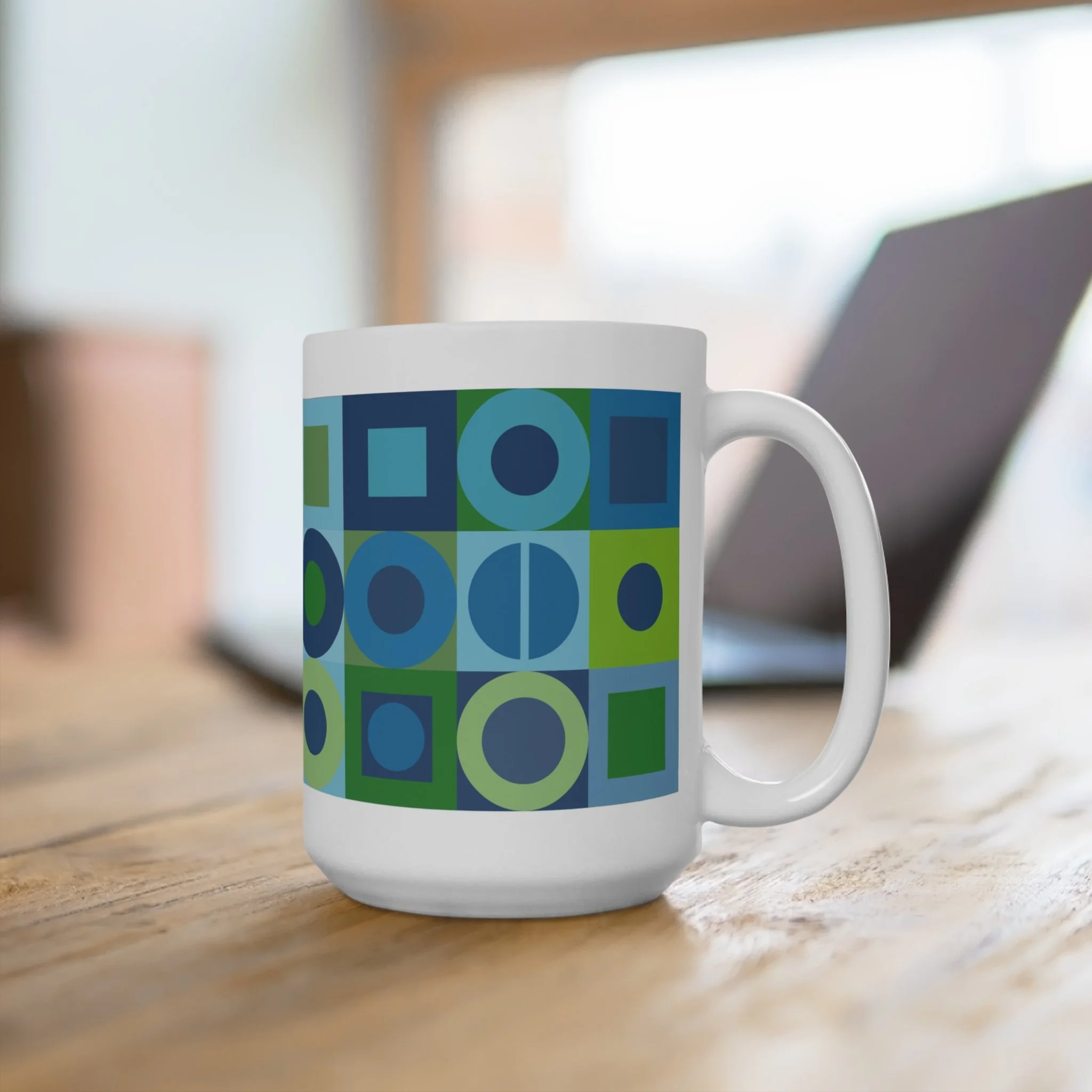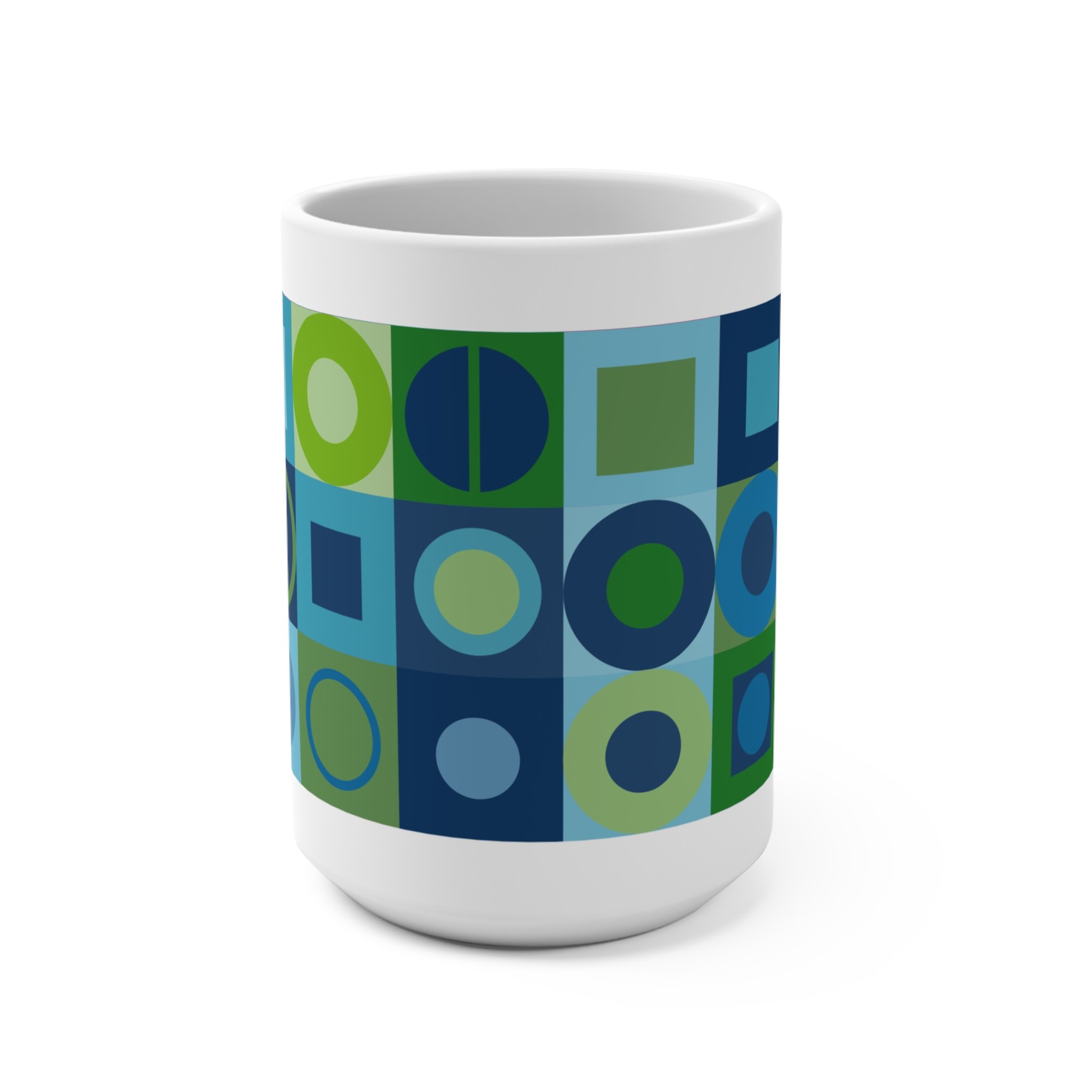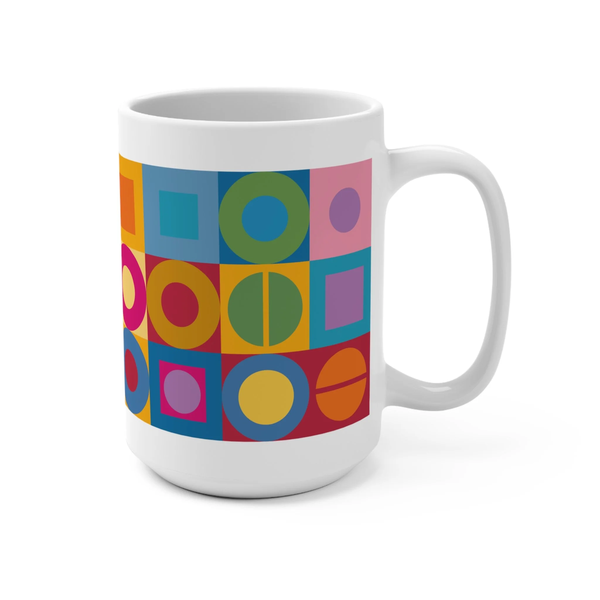Inspired by my Harmony in Circles and Squares series, this 15oz ceramic mug transforms one of my geometric grids into an object you can hold, sip from, and live with. The pattern wraps fully around the mug—crisp, vibrant, and unmistakably rjostudio—turning a morning coffee, late-night tea, or studio break into a small moment of color and rhythm.